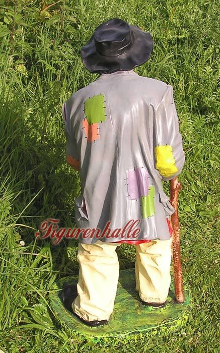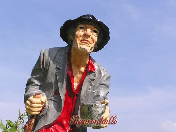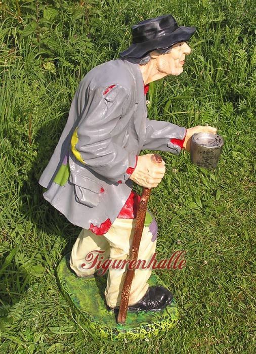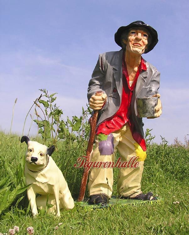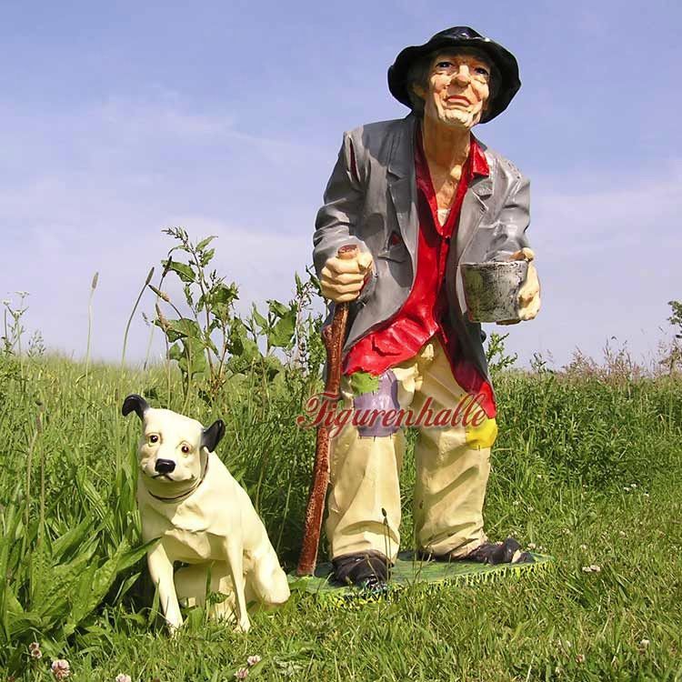 Bettler Figur Statue Skulptur Penner Landstreicher Deko Wanderer Gartenfigur mit Hund