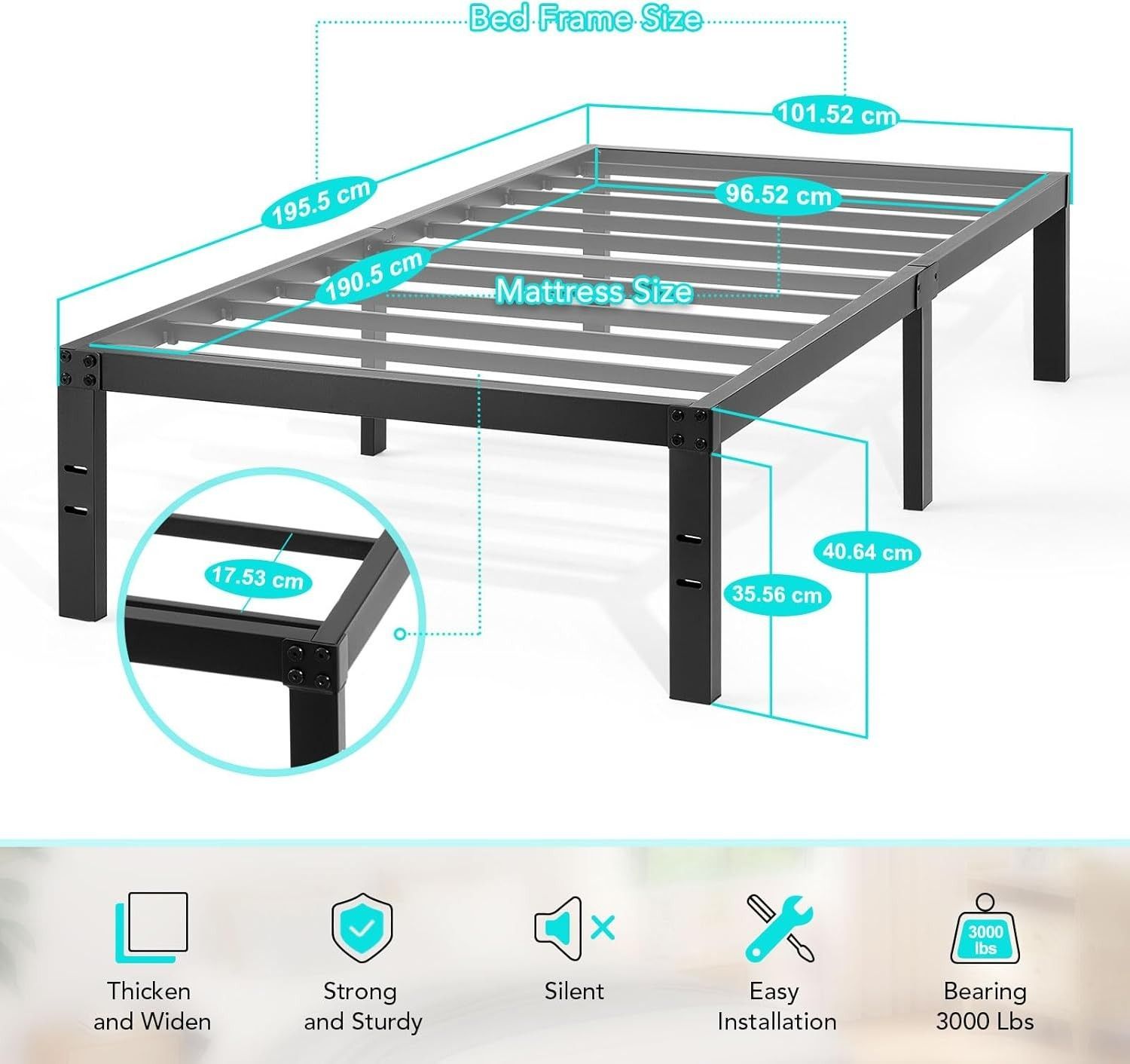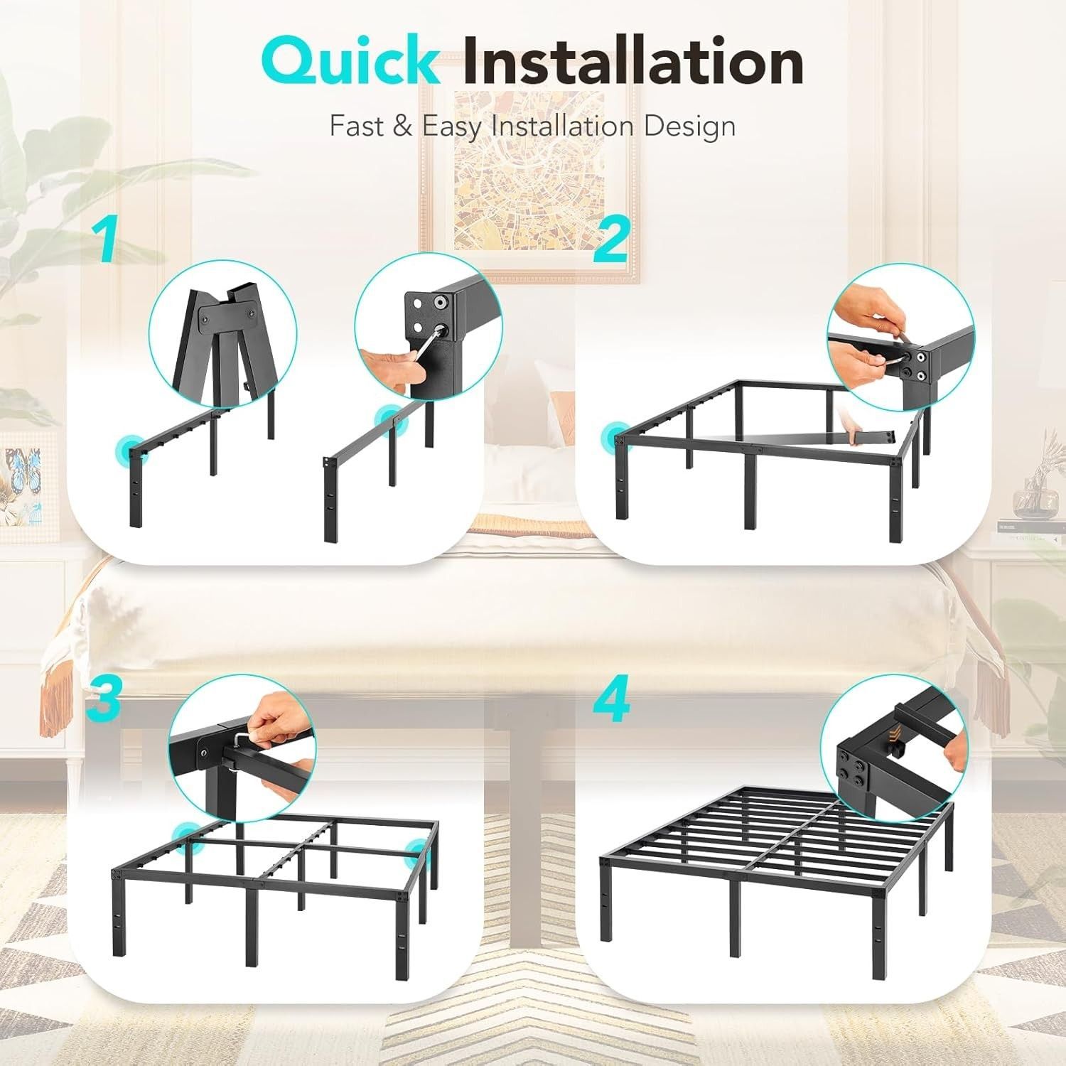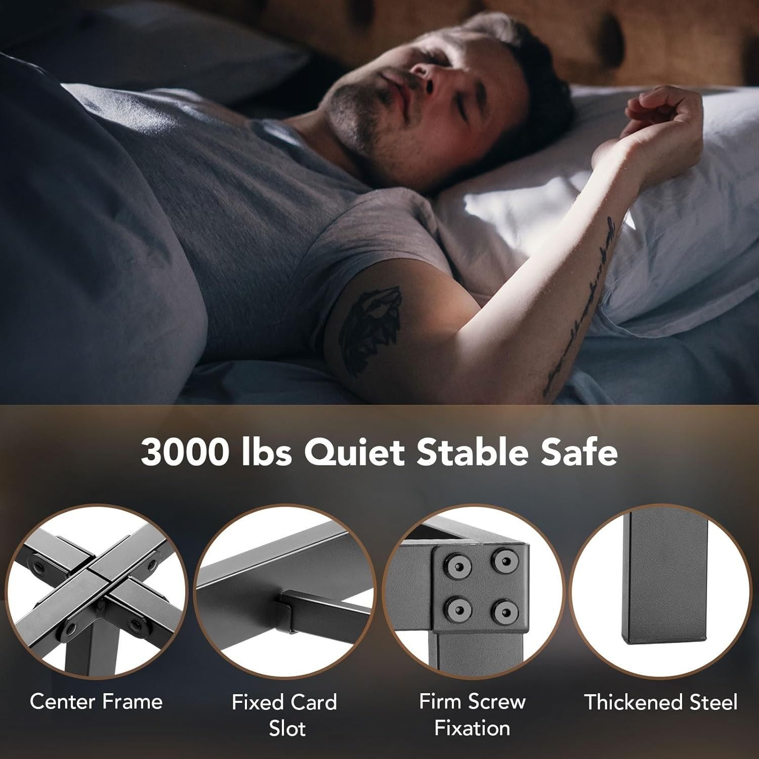 Robuster Stahlrahmen & Stahllatten sorgen für eine außergewöhnliche Stabilität und verhindern ein Durchhängen der Matratze. 1000 kg Gewichtskapazität – Ideal für Personen jeder Gewichtsklasse, auch für Paare oder Familien. Verstärkte Konstruktion: Jeder Fuß des Bettgestells ist mit einem 4-Loch-Verstärkungsdesign ausgestattet, das Wackeln und Quietschen verhindert. Langlebige Pulverbeschichtung schützt den Metallrahmen vor Rost und Abnutzung.