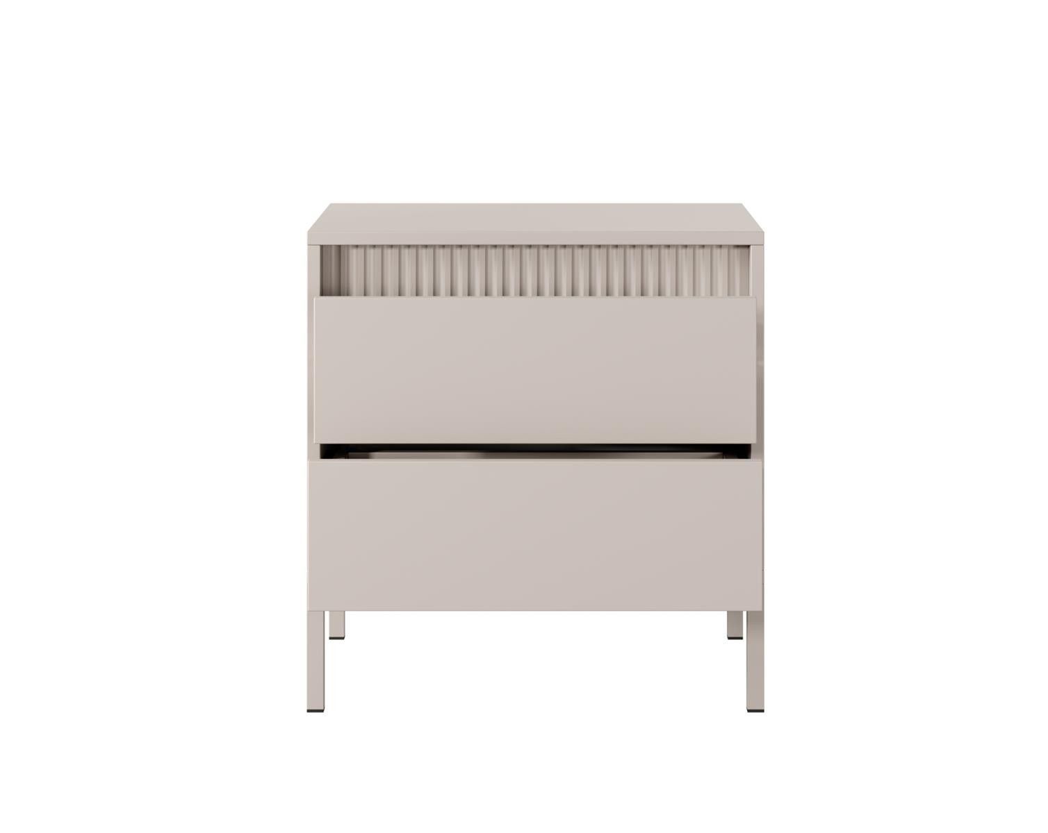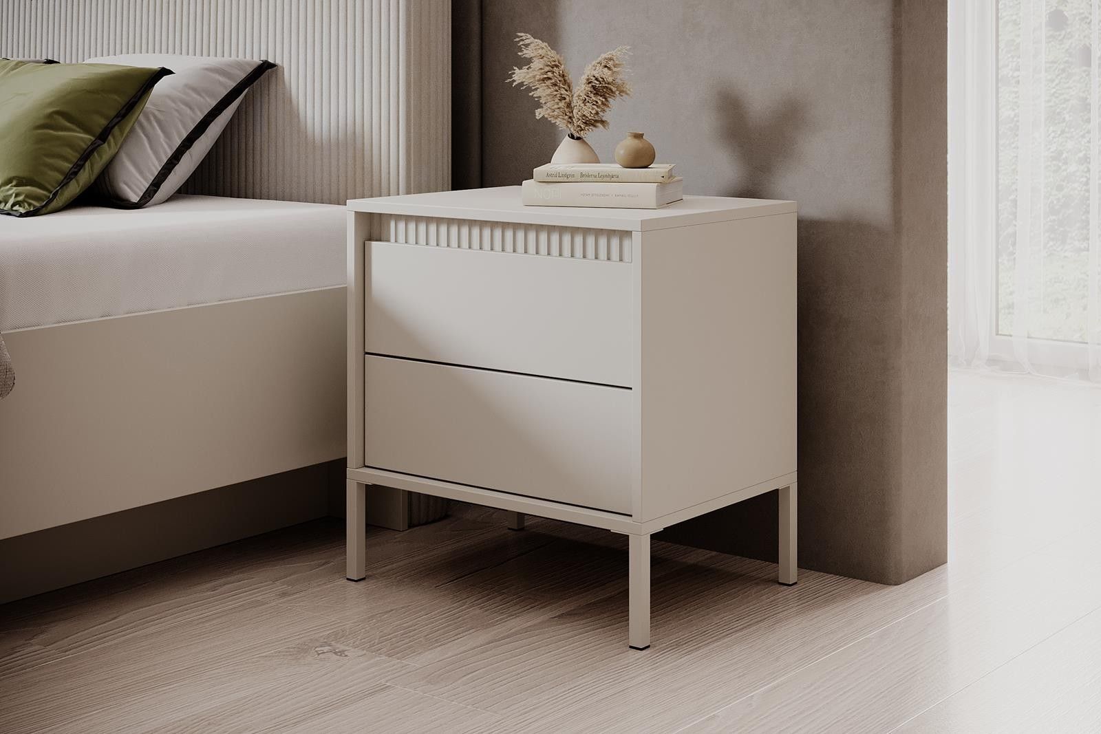 BETTSO Beige Nachttisch mit kannelierten Fronten mit Schubladen SENSO
