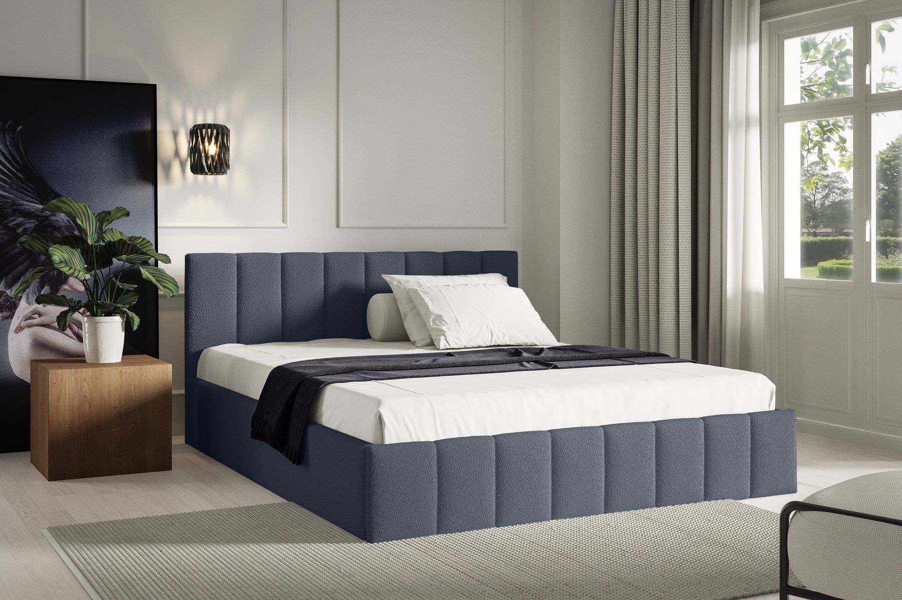 BETTSO Bequemes EYLA-Polsterbett in Marineblau für das Schlafzimmer 160x200