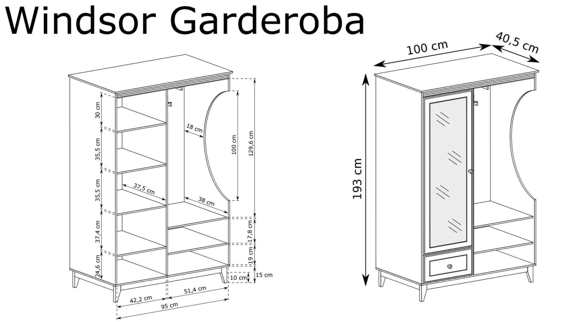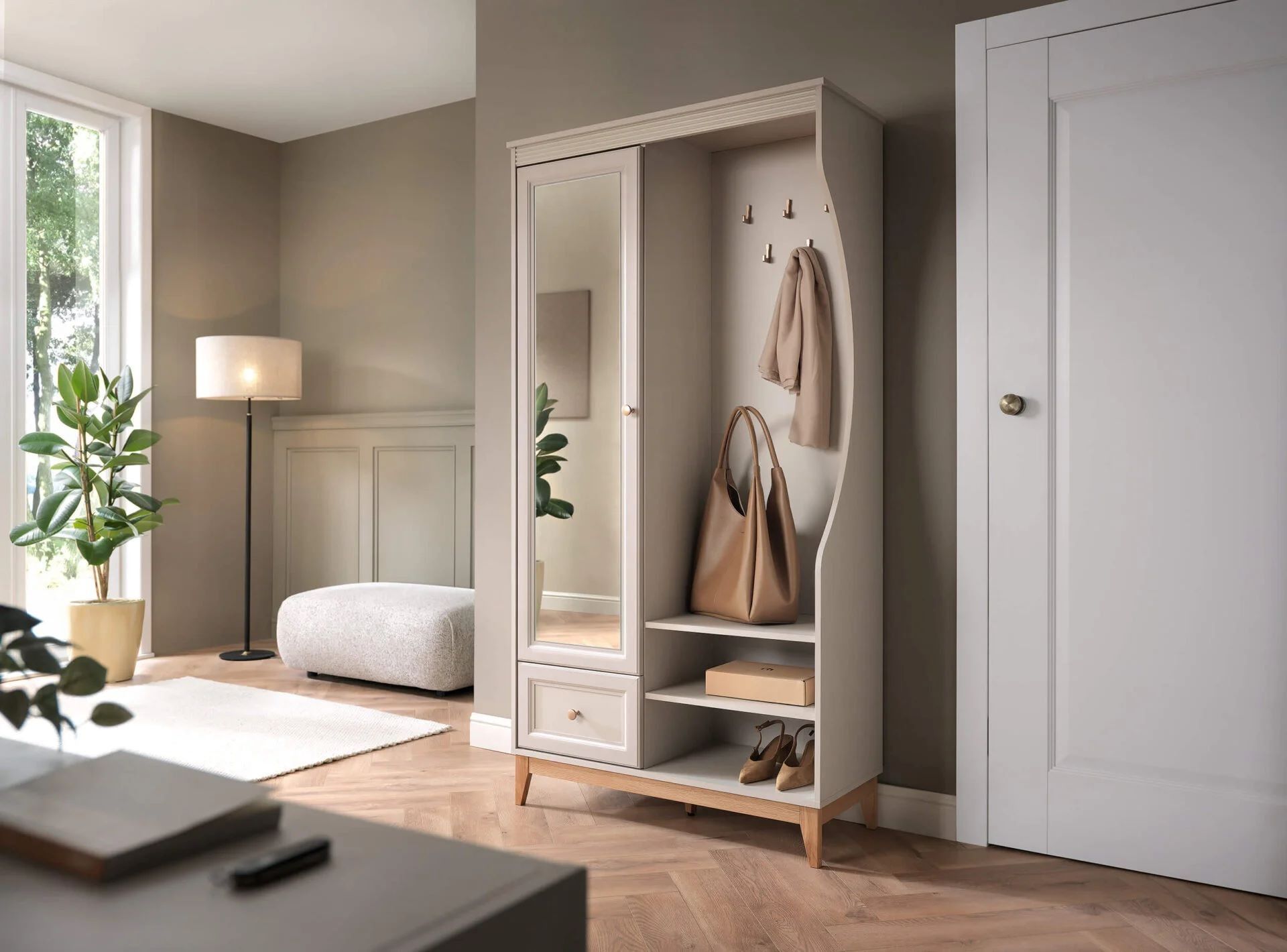 BETTSO Eintüriger Kleiderschrank Windsor mit Spiegel und Schublade in Kaschmir