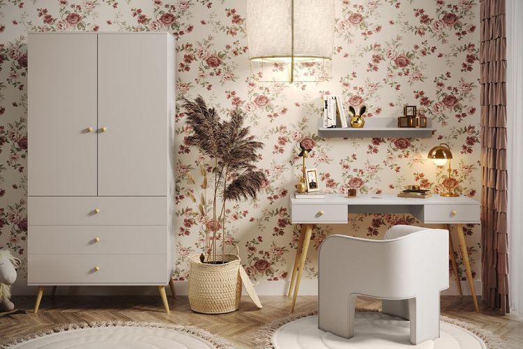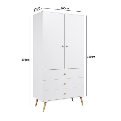 BETTSO IKON Kleiderschrank Zweitüriger mit Schubladen String Griffe 100 cm Kaschmir
