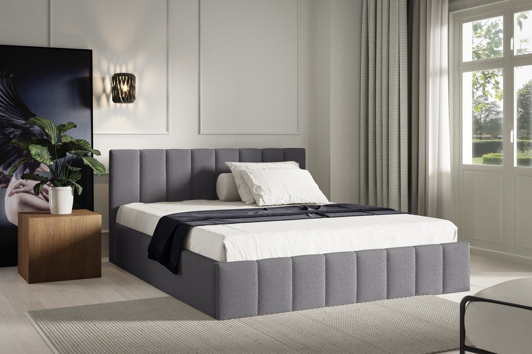 BETTSO Komfortables graues EYLA-Bett für Bettzeug aus weichem Bouclé-Stoff 140x200