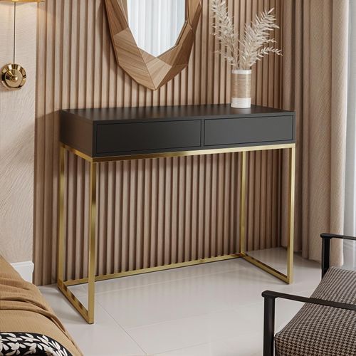 BETTSO Moderner schwarzer Frisiertisch im Loft-Stil CUBIC 100 auf goldenen Gestell