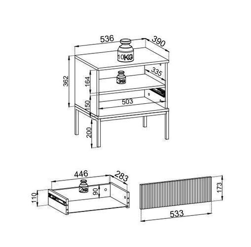 BETTSO Nachttisch mit geriffelte Fronten LED-Beleuchtung Sentino Schwarz + Eiche