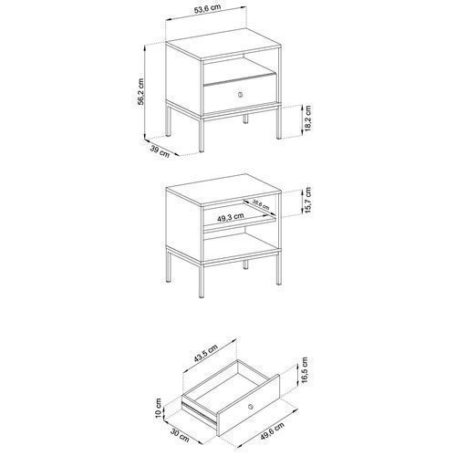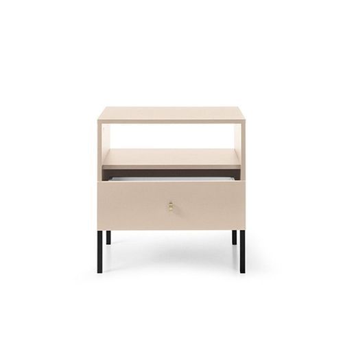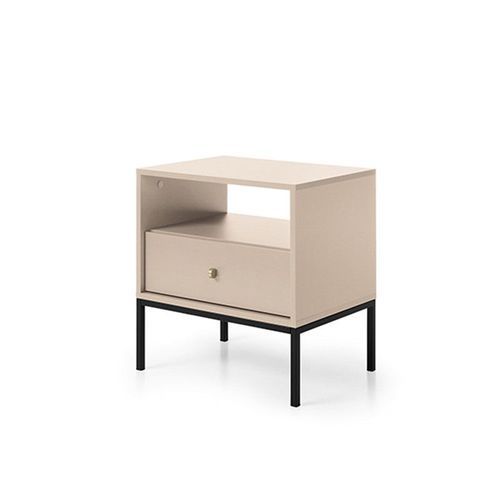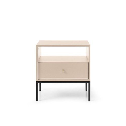 BETTSO Nachttisch Nachtkommode mit Schublade Regale MOLLY Beige mit Schwarzrahmen