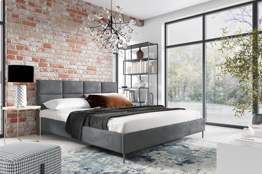 BETTSO-Polsterbett WIKI / grau / goldene Beine / R91 / 140x200