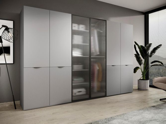 BETTSO Satz von 3 modularen Schränken Sandbox 2X NOVA Grau + FLUTES mit LED
