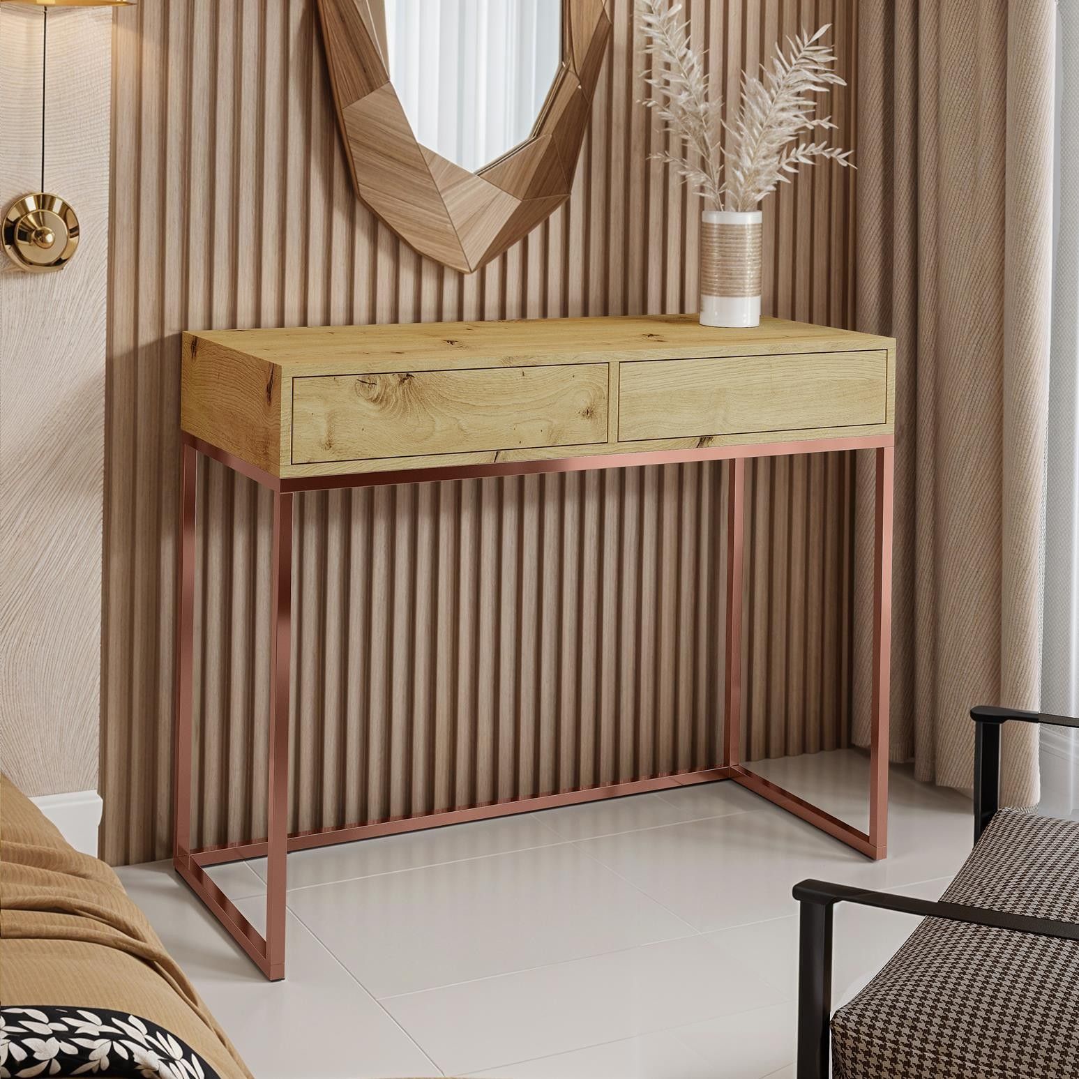 BETTSO Schminktisch CUBIC 80 mit Kupferrahmen und Wotanplatte aus Eiche - Loft-Stil