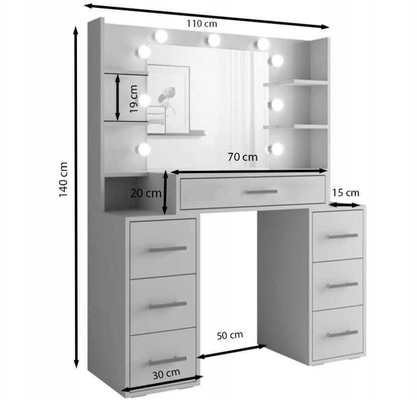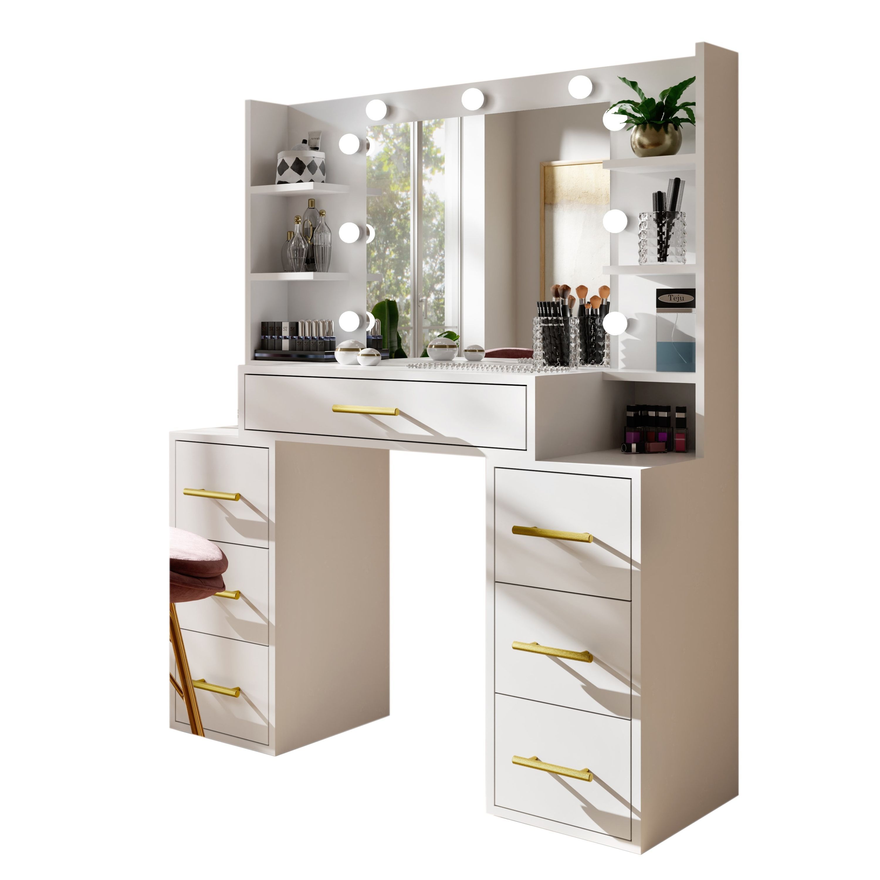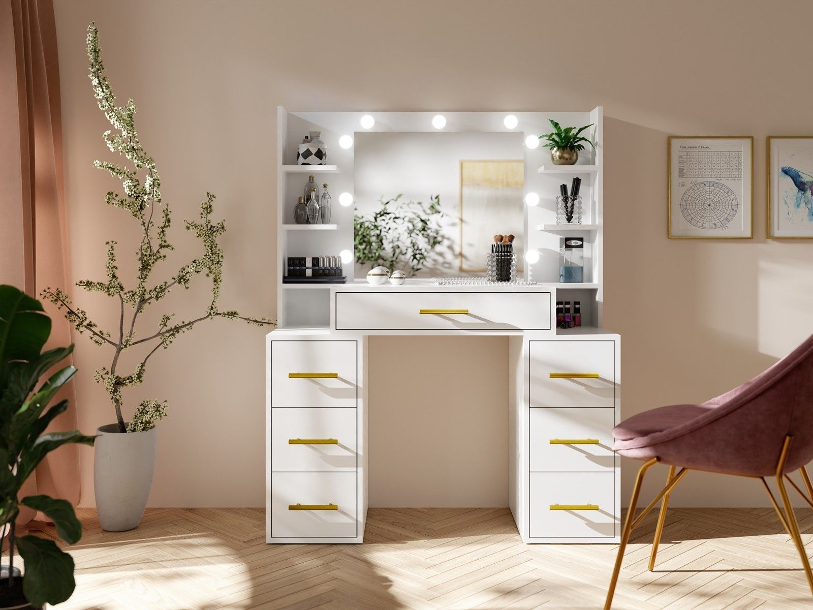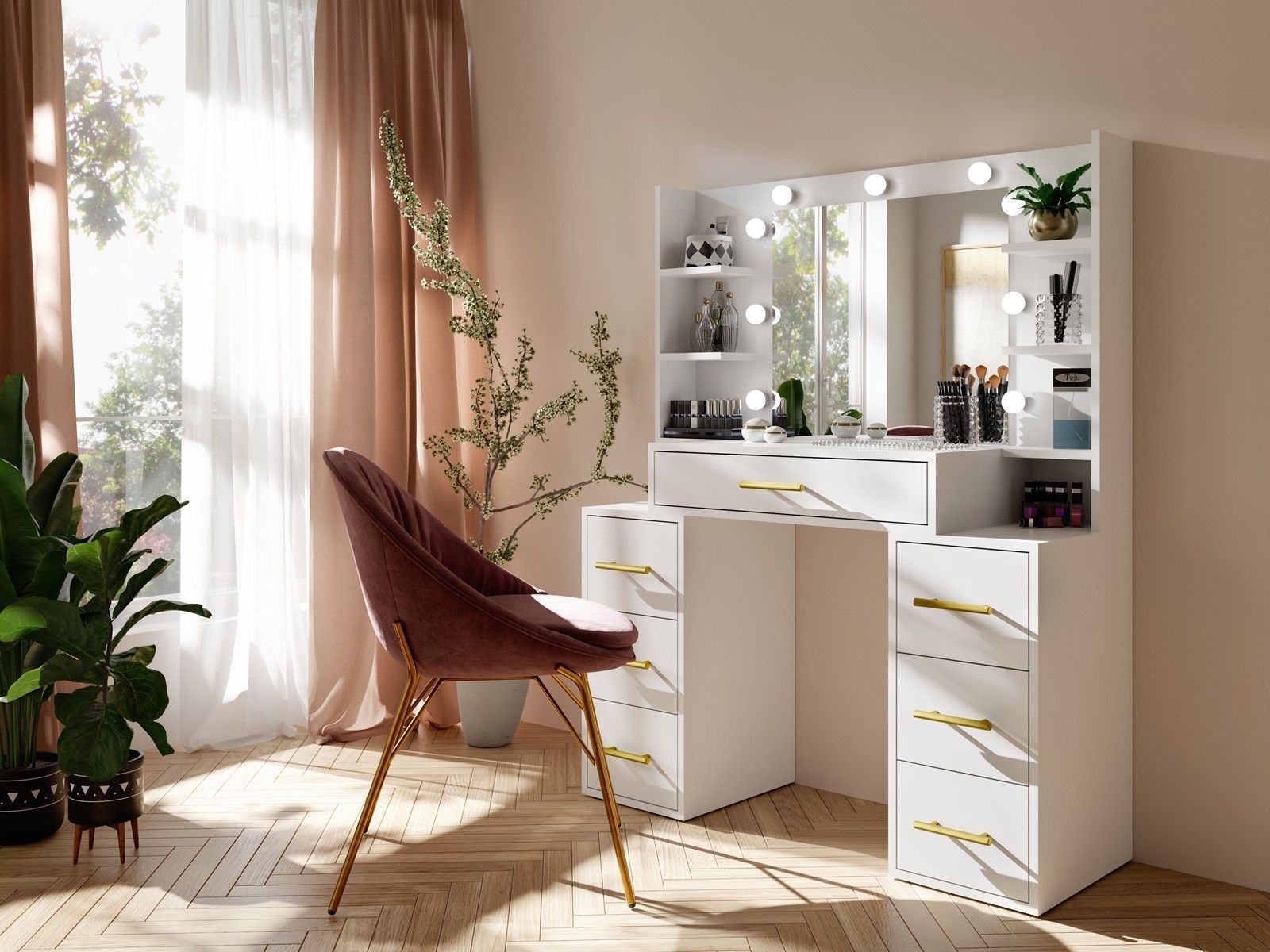 BETTSO Schminktisch STAR weiß mit Schubladen Spiegel und Beleuchtung