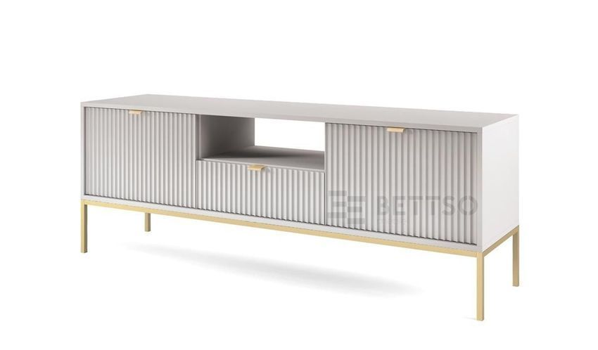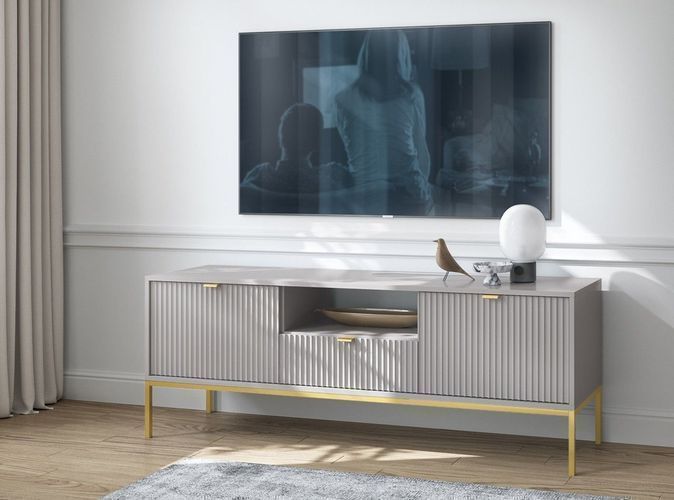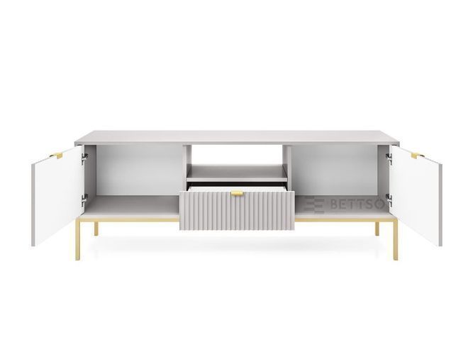 BETTSO TV-Schrank TV-Kommode TV-Möbel TV-Regal NOVA RTV-154 Grau Goldrahmen