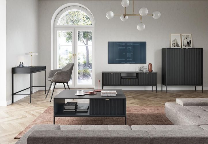 BETTSO TV-Schrank TV-Kommode TV-Möbel TV-Regal NOVA RTV-154 Schwarz mit Schwarzrahmen