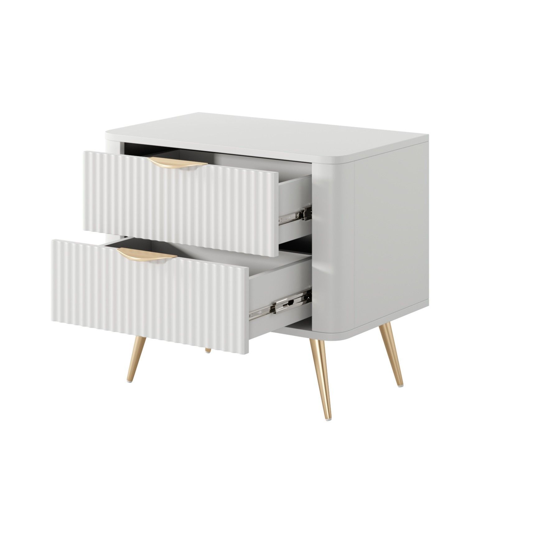 BETTSO Weißer Nachttisch LANTE - 2 Schubladen, geriffelte Fronten