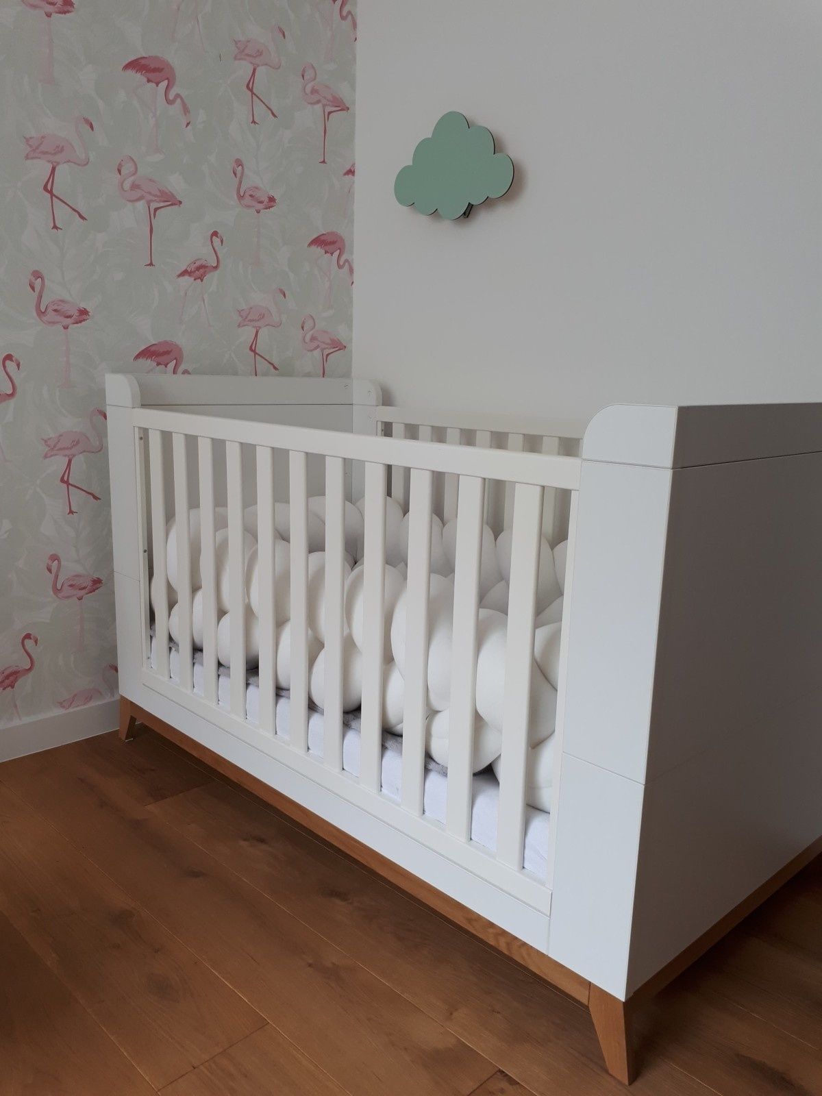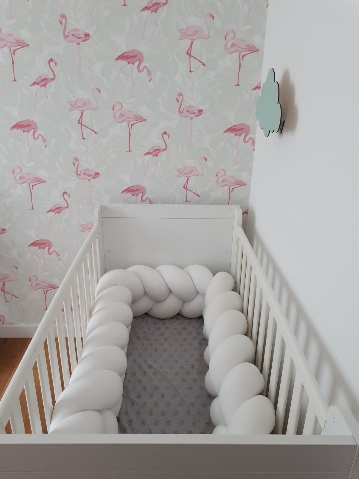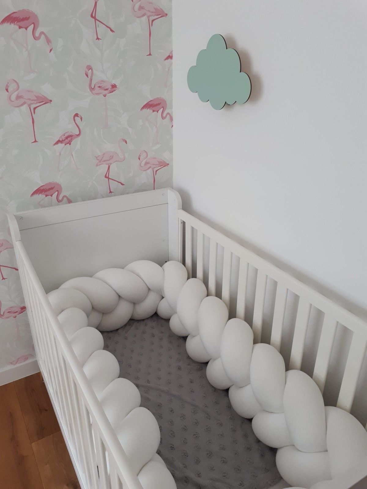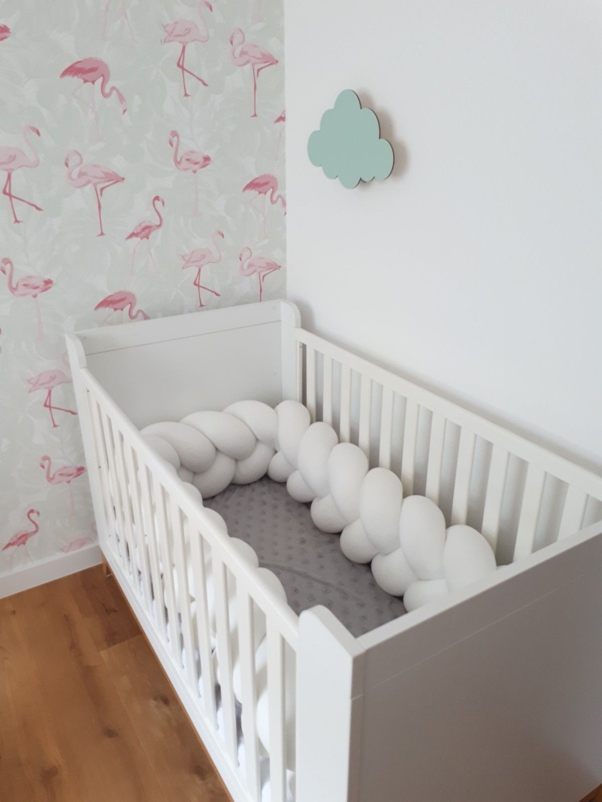 Bettumrandung - Stoßstangenkissen - Bettschlangengeflechtkissen - 3,5 Meter - Creme