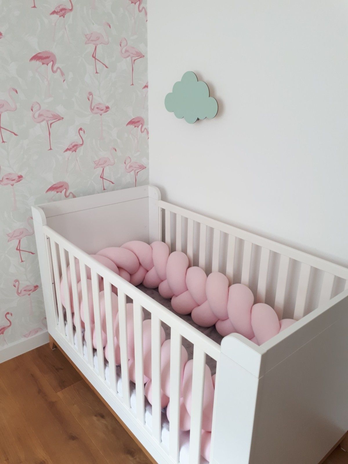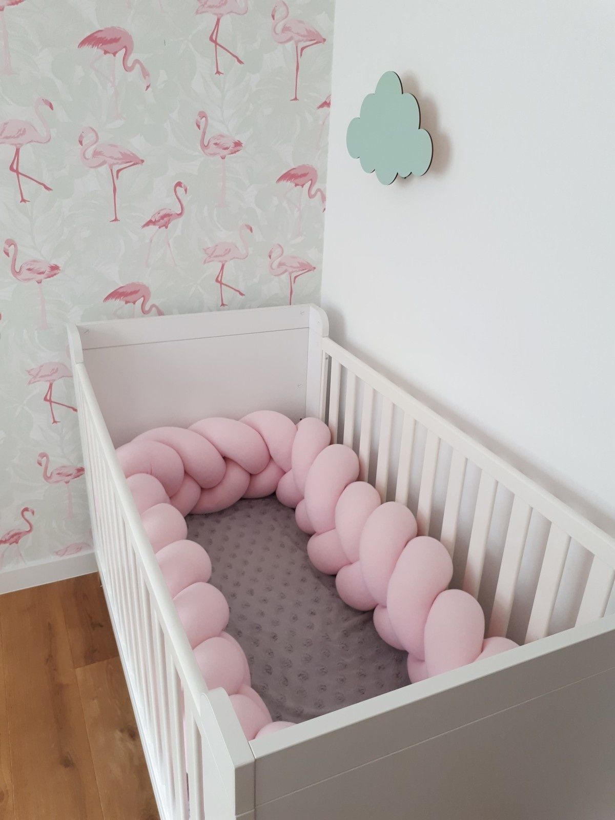 Bettumrandung - Stoßstangenkissen - Bettschlangengeflechtkissen - 3,5 Meter - hel