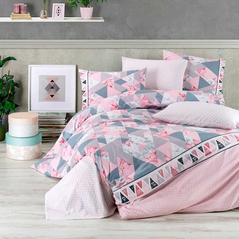 Bettwäsche Baumwolle 135x200 80x80 Set 2tlg. 4tlg. Modern Rosa Grau