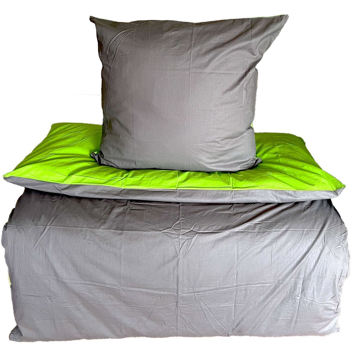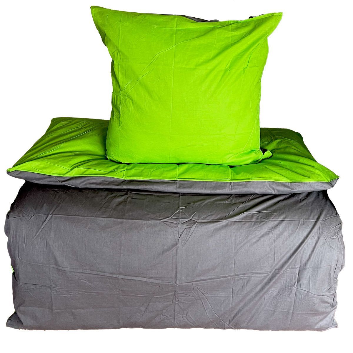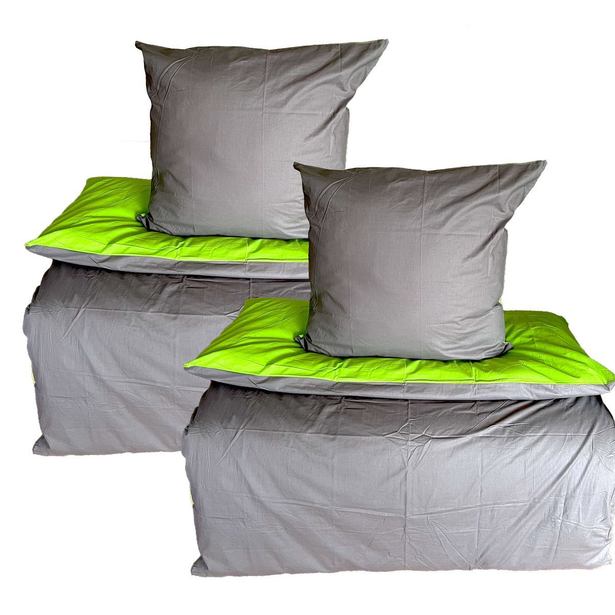Bettwäsche Baumwolle Uni Wende 135x200 / 80x80 cm Set 2tlg. 4tlg. Grün Grau