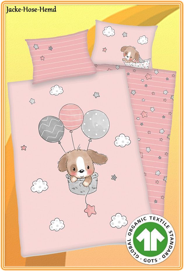 Herding Bettwäsche Bio Baumwolle Hund Welpe Babybettwäsche Sweet suppy Rosa Gr.100x135cm NEU