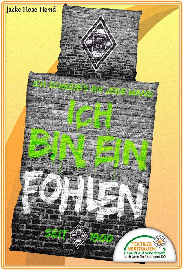 Bettwäsche Mauer Borussia Mönchengladbach Die weißen Elemente leuchten im Dunkeln NEU