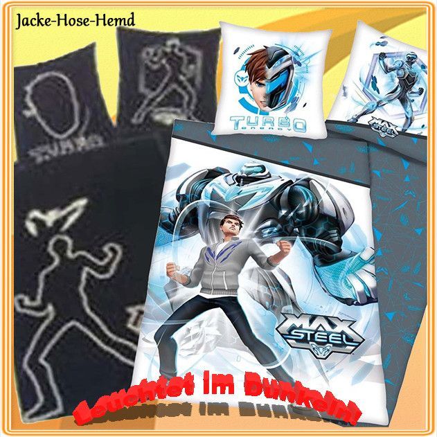 Herding Bettwäsche Max Steel Turbo leuchtet im Dunkeln Glow Gr: 135x200cm NEU