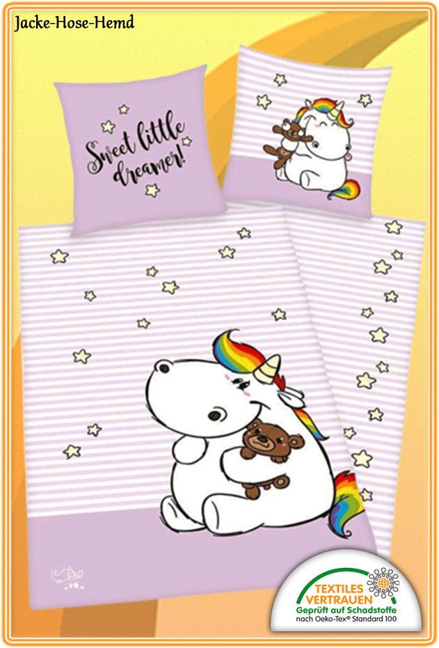 Herding Bettwäsche Pummeleinhorn Rosa Einhorn Baumwolle Stern Bärchen Rosa Gr. 135x200cm NEU