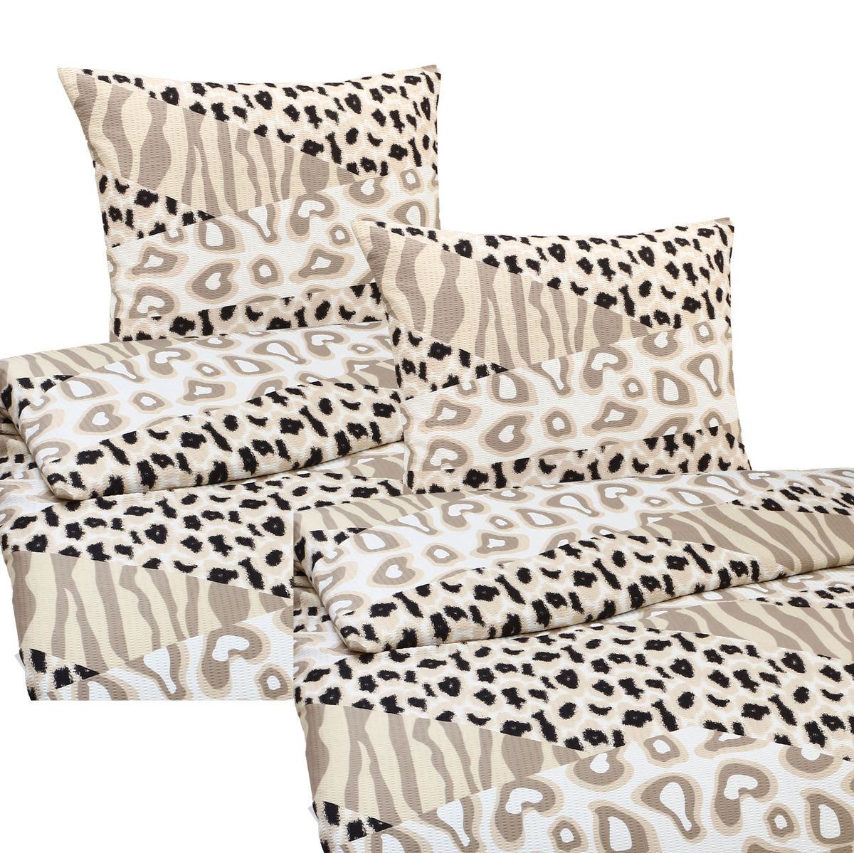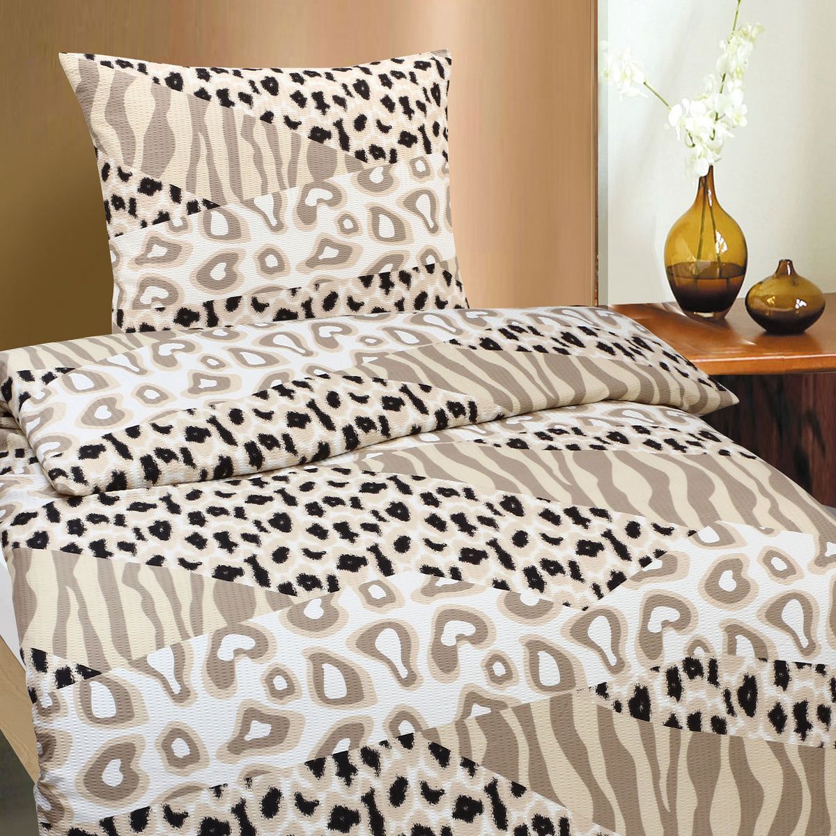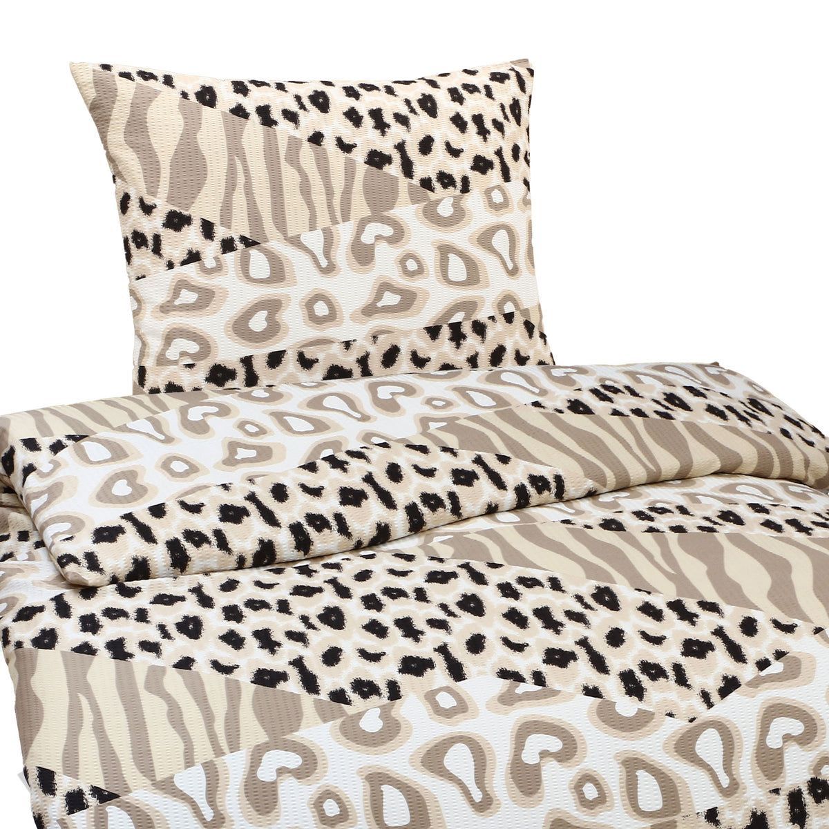 Bettwäsche Seersucker Mikrofaser Leopard 2tlg.4tlg.135x200 80x80 Beige