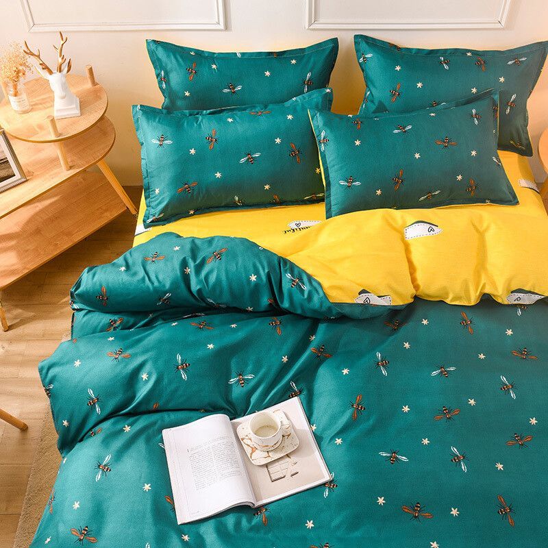 Bettwasche Grun Gelb Fruhling Insekten Muster Bettbezug Romantische KissenbezugO