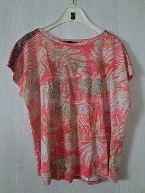 • Betty Barclay Shirt Weiß Beige Ärmel Cut Outs Perlen Ausgefallen Farbverlauf Gr. M