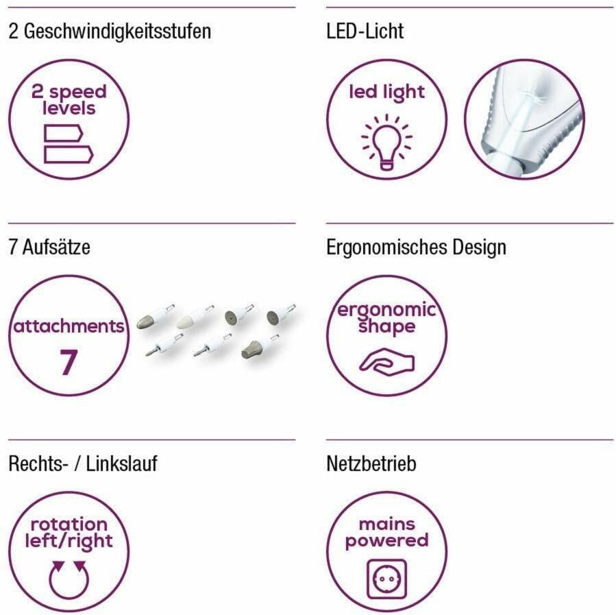 Beurer Beurer MP 41 elektrisches Manikére Pedikére-Set 7 Nagelpflege-Aufsätze LED Licht