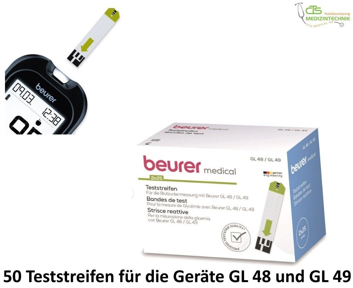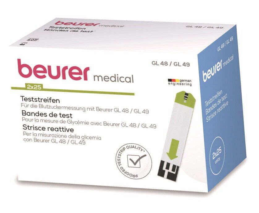 Beurer Beurer Teststreifen GL 48 49 50 Stück (2x25) MHD 08-2025 BZ Stick Teste Streifen