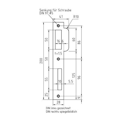 Bever Lappenschließblech 2 ZT 24 x 170 mm rund silber links