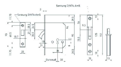 Bever Schiebetürschloss 138 P mit Zirkelriegel PZ Dornmaß 55 mm mit Schließblech
