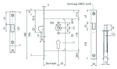 Bever Schiebetürschloss 139 P mit Hakenfalle PZW Dornmaß 55 mm mit Schließblech