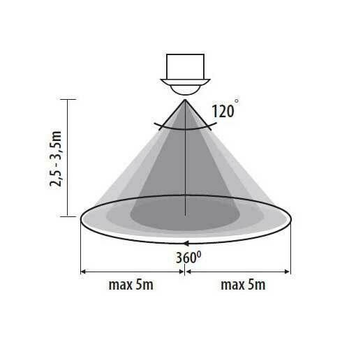 Kanlux Bewegungsmelder Unterputzmontage Decke Radius 5m 2000W 600W 5sek bis 6min
