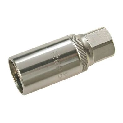 zur Demontage und Montage von Stehbolzen 3 Klemmwalzen zum Halten des Stehbolzens mit Rändelung vorderer Teil hochglanzverchromt, hinterer Teil matt verchromt mit Aussensechskant 21 mm Technische Daten Antriebsprofilgröße, imperial: 1 2 Antriebsprofilgröße, metrisch: 12,5 mm Bruttogewicht: 132 g Län