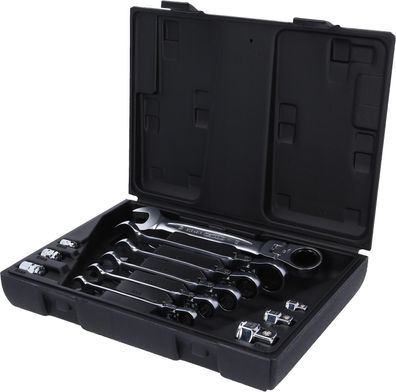 • GEARplus Gelenk-Ratschenringmaulschlüssel-Satz, 12-tlgfeststellbar mit Adapter