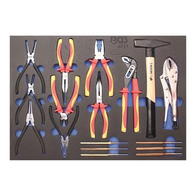 BGS-4011 3/3 Werkstattwageneinlage: Zangensortiment, Hammer, Splintentreiber, 17-tlg