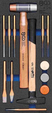 Werkstattwageneinlage 1/3: Locheisen-Satz, Hammer | 15-tlg. BGS