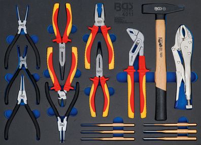 • BGS-4011 3/3 Werkstattwageneinlage: Zangensortiment, Hammer, Splintentreiber, 17-tlg