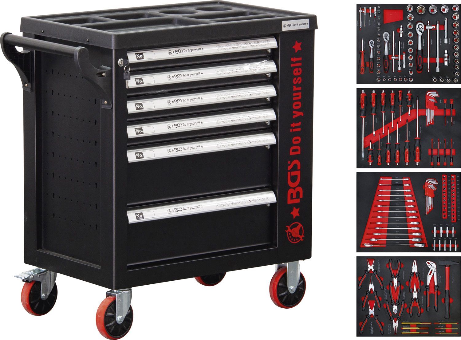 BGS-6055 Werkstattwagen 6 Schubladen 1 Seitentür mit 158 Werkzeugen