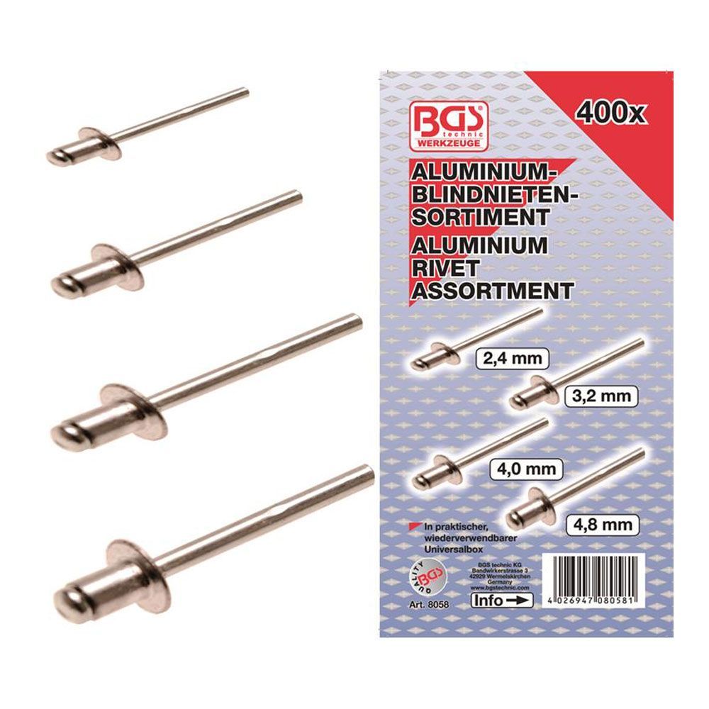 BGS 8058 Blindnieten Sortiment Popnieten Alu 400-tlg. im Sortimentkoffer