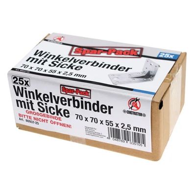 • Winkelverbinder | mit Sicke | 70 x 70 x 55 x 2,5 mm | Spar-Pack | 25 Stück