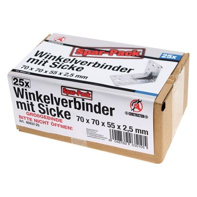 • BGS-80937-25 I Winkelverbinder, Spar-Pack (25 Stück), verzinkt mit Sicke (Verstärkung