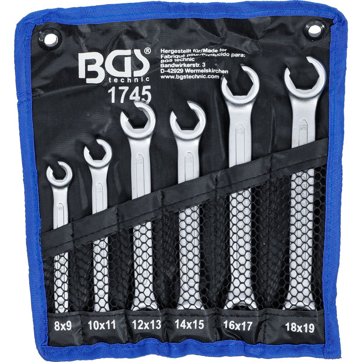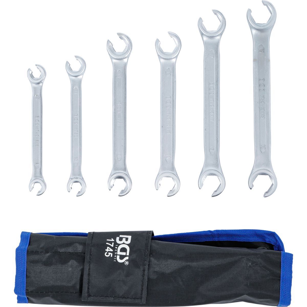 BGS BGS Bremsleitungsschlüssel offen, Offener Doppel-Ringschlüssel Satz gekröpft 6 kant