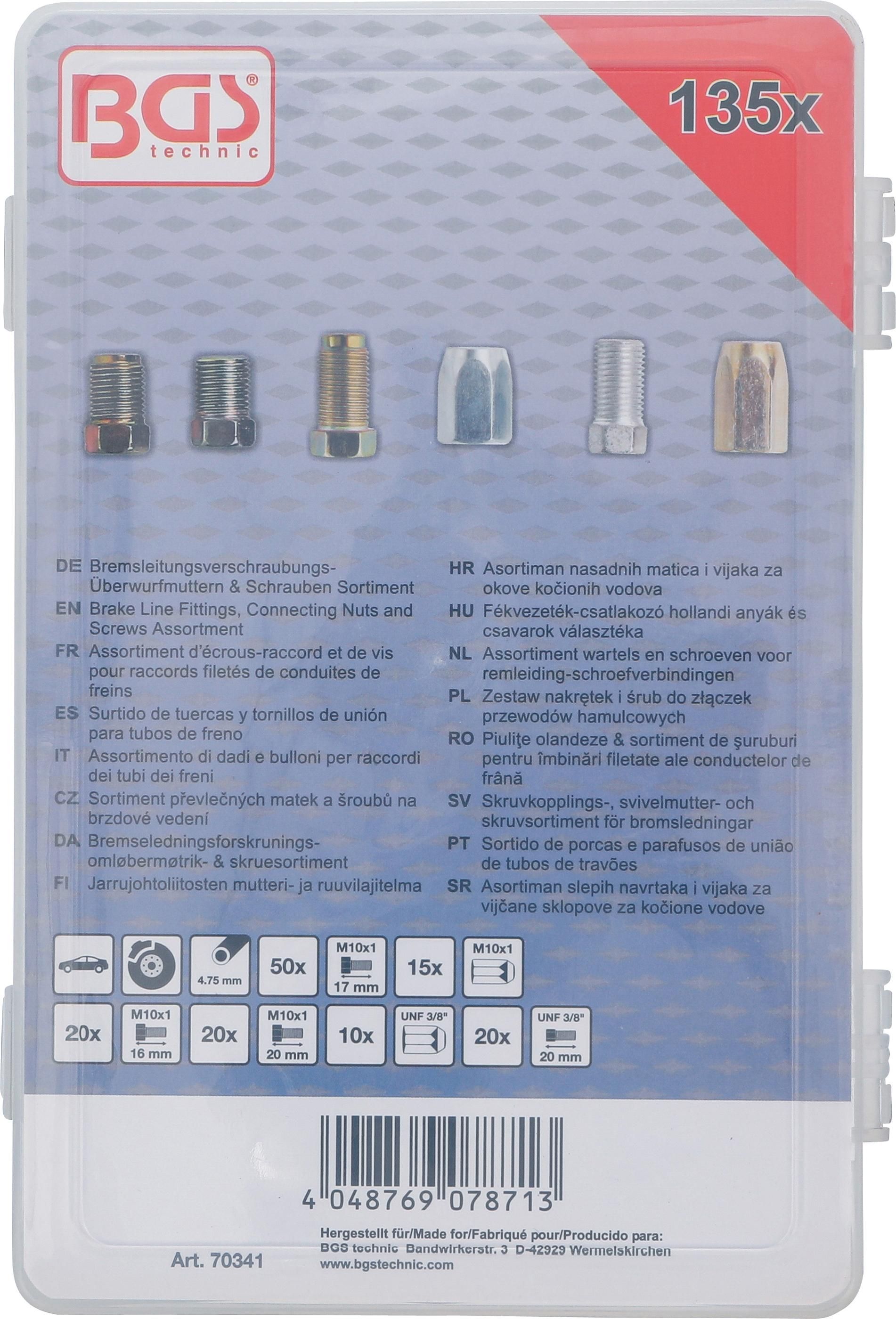 BGS BGS Bremsleitungsverschraubungs- Überwurfmuttern & Schrauben Sortiment | 135-tlg