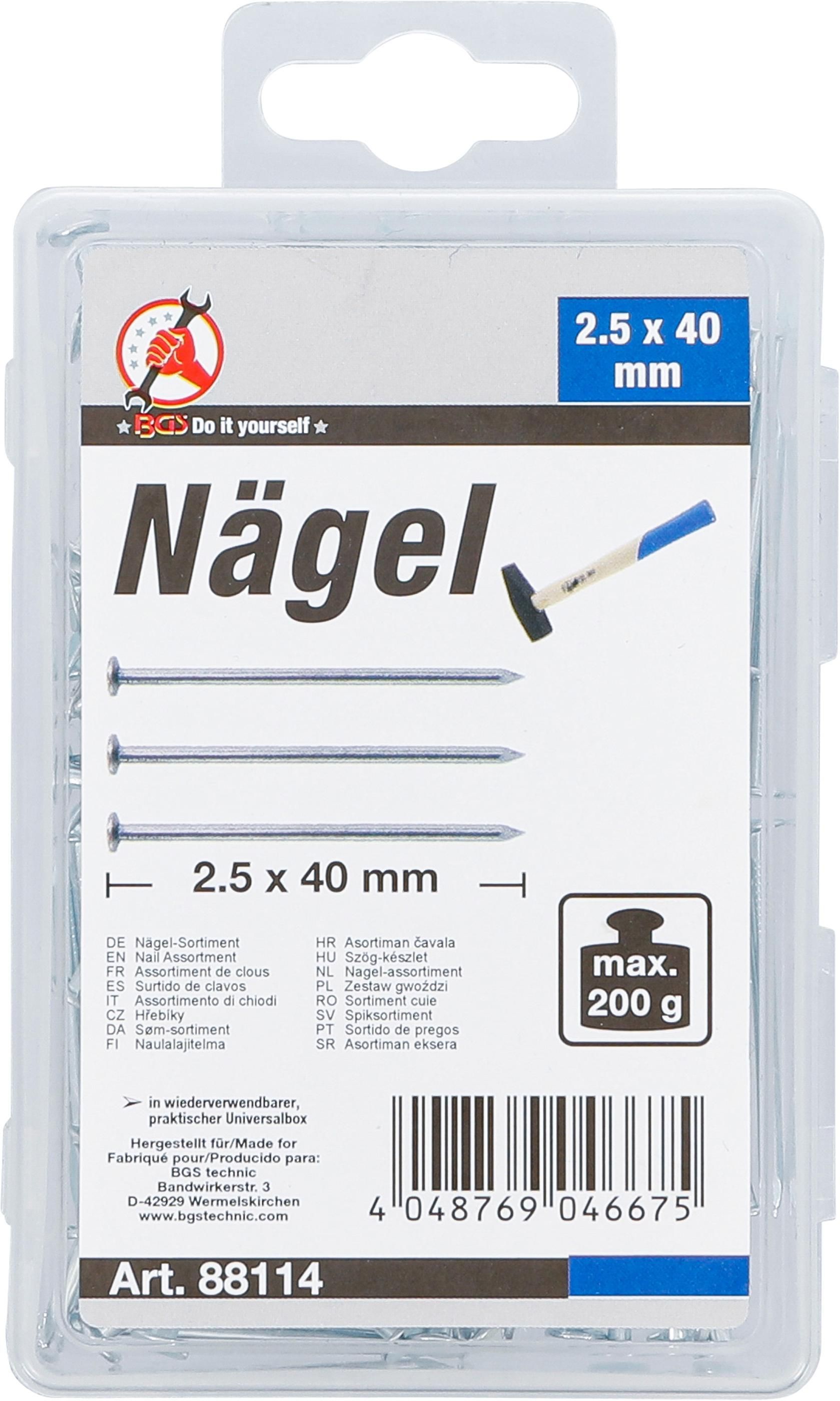 BGS Do It Yourself Nägel-Sortiment | 200 g | 2,5 x 40 mm