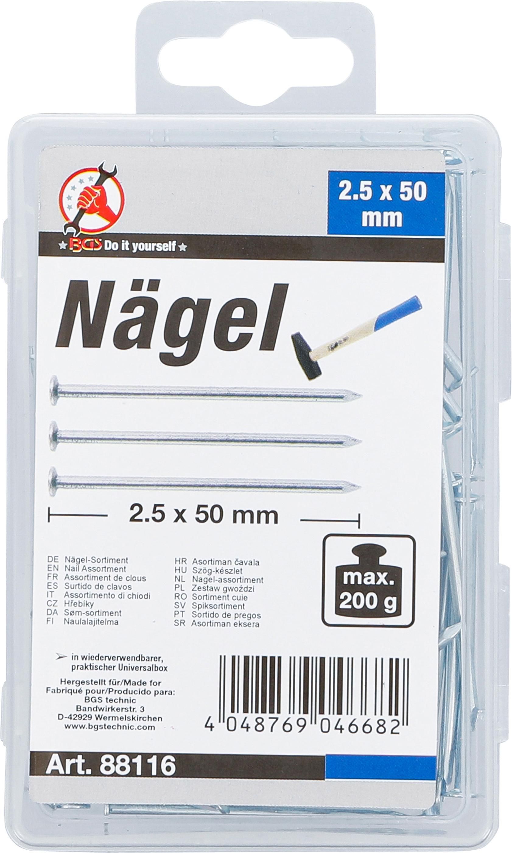 BGS Do It Yourself Nägel-Sortiment | 200 g | 2,5 x 50 mm
