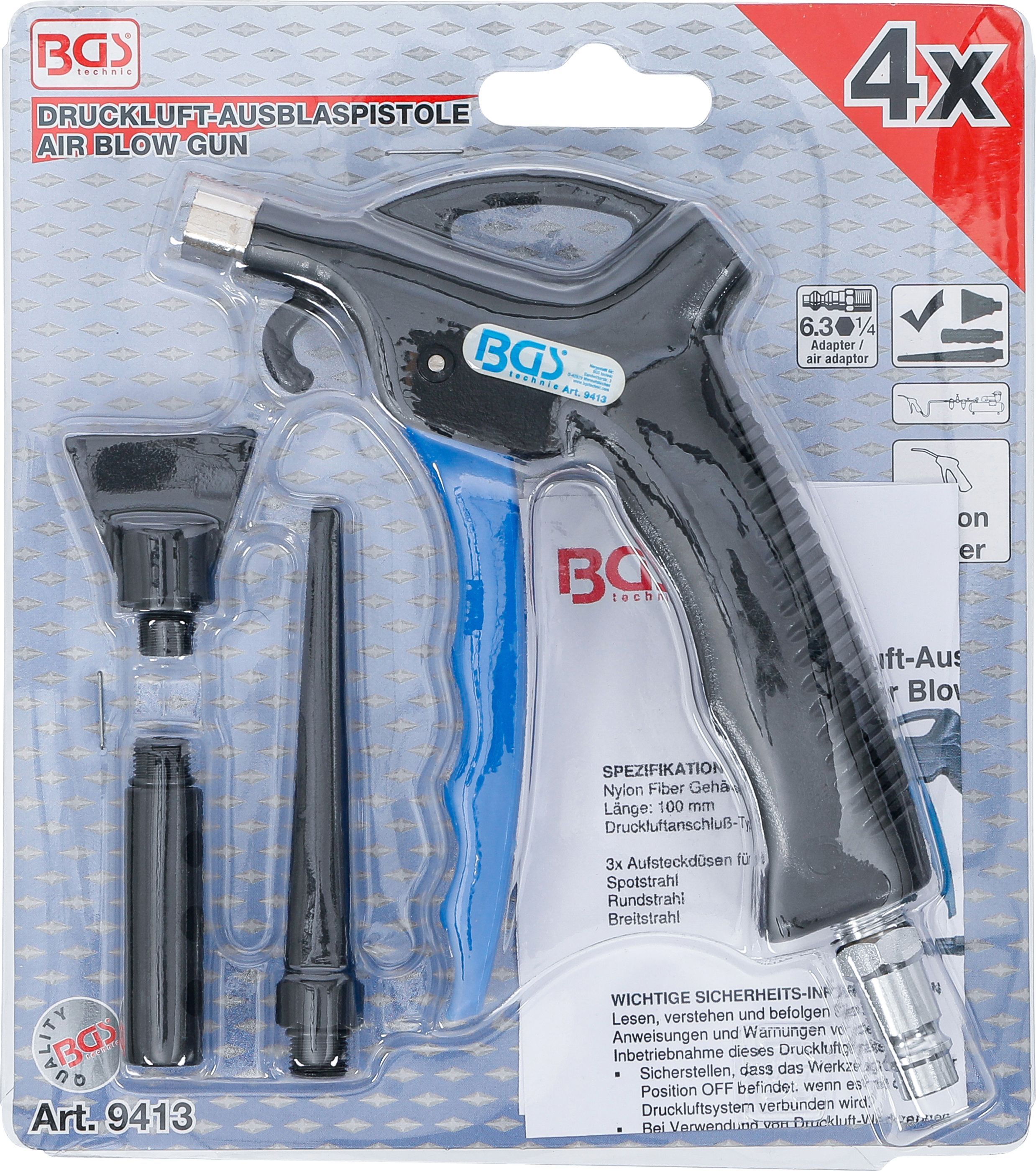BGS BGS Druckluft-Ausblaspistole | mit 3 Aufsätzen