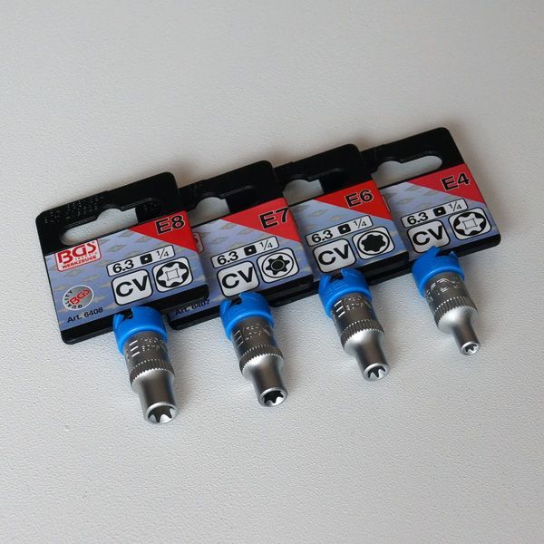 BGS E-Profil Nuss, Steckschlüssel Einsatz Außen Torx, Antrieb 1/4", SW E4 - E11