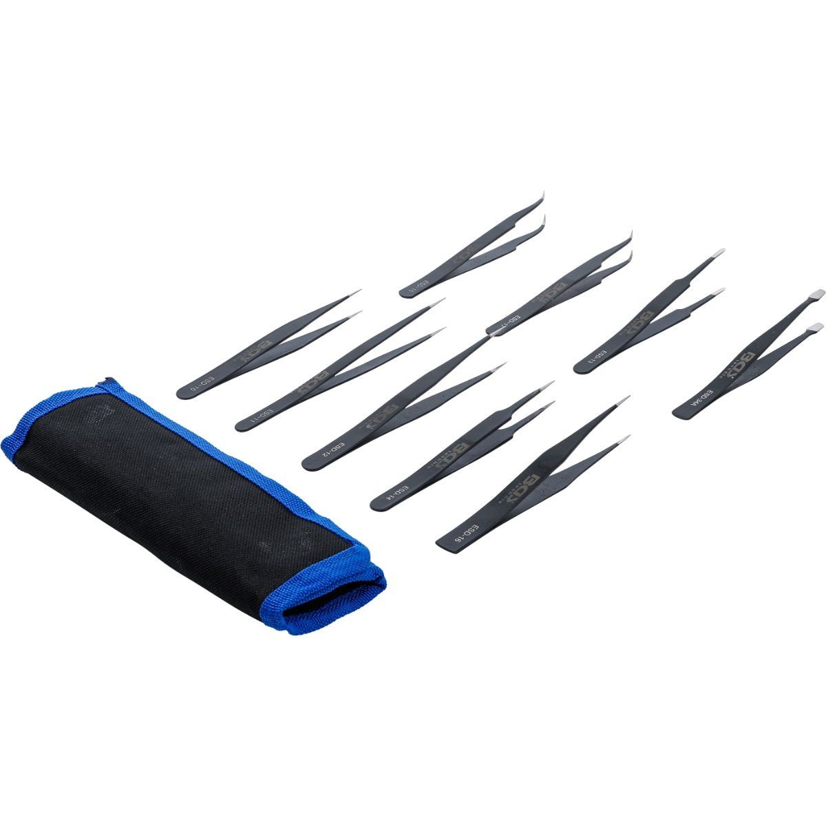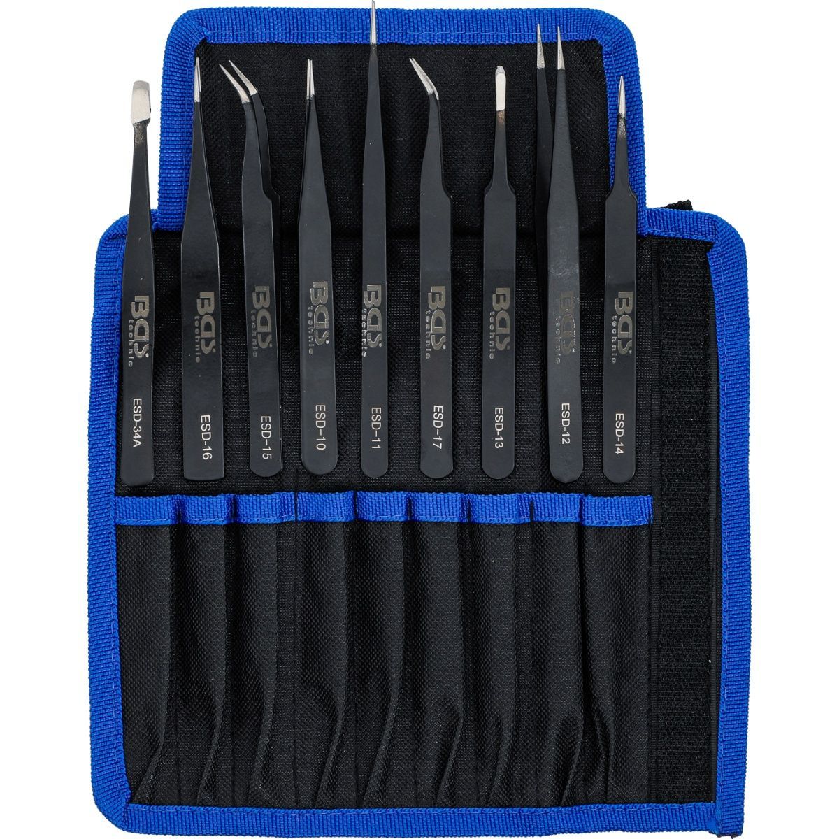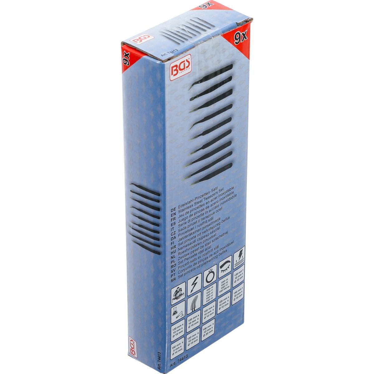 BGS BGS Edelstahl-Pinzetten-Satz mit verschiedenen Spitzen, ESD-Beschichtung, 9-tlg